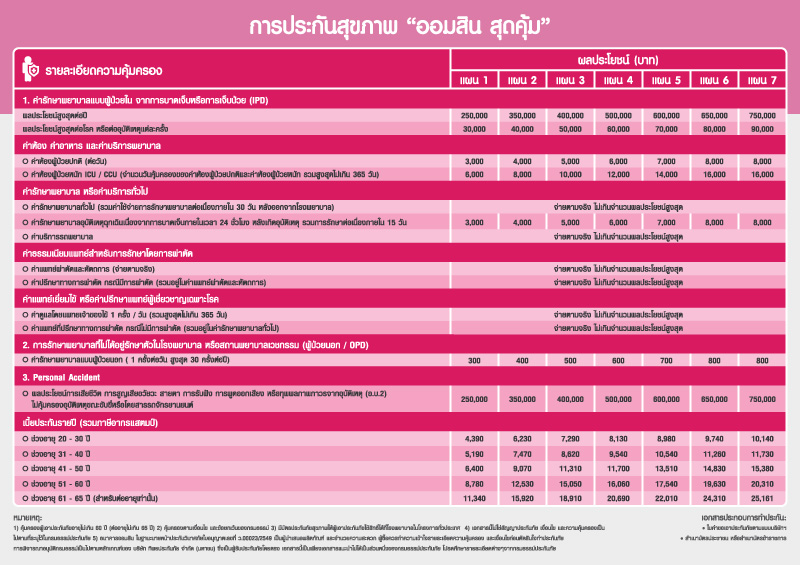 - อายุ 20 – 60 ปี ณ วันเริ่มทำประกันภัยครั้งแรก (สามารถต่อายุกรมธรรม์ได้ถึง 65 ปี)