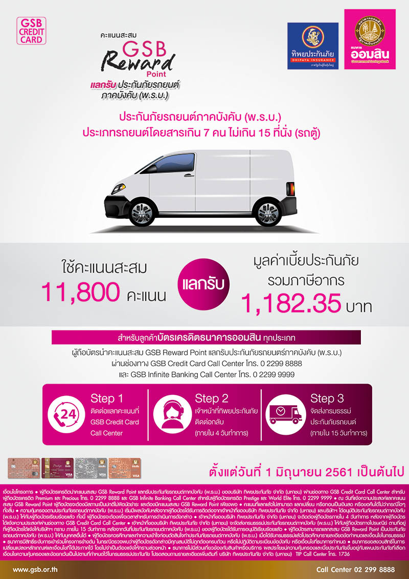 แลกคะแนนบัตรเครดิตออมสินเป็นประกันภัยรถยนต์ภาคบังคับ(พ.ร.บ.) – รถตู้